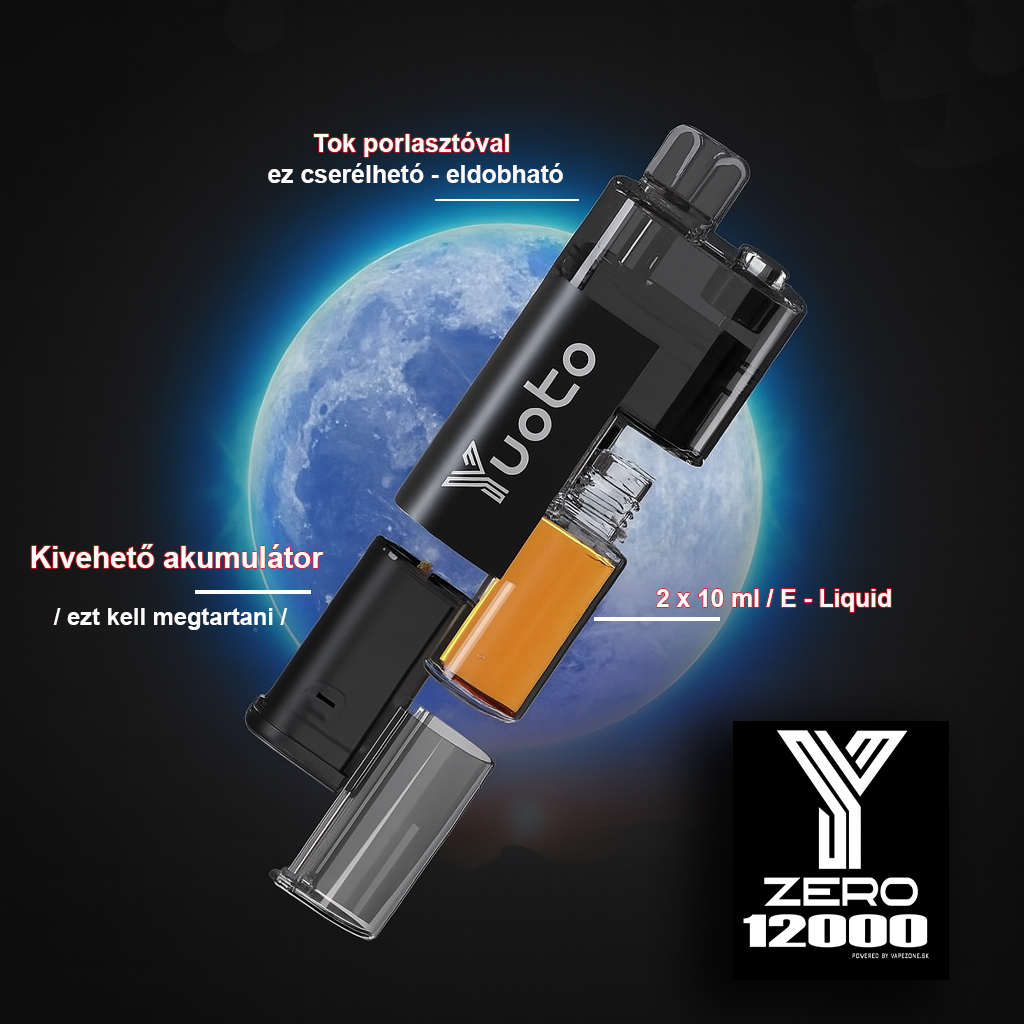 Az Y ZERO 12000 terméket 1,5 éves fejlesztés után hozták forgalomba, hogy a vásárlók számára egy "nagy puffos" terméket kínáljanak LEGÁLISAN AZ EU TERÜLETÉN. A termék és a hozzá tartozó likvidek egészségügyi kártyával rendelkeznek, melyek be vannak regisztrálva az EU-ban.